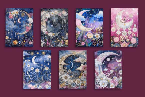 I use this kit when I want to capture the feeling of a midnight garden under a full moon. It is the crown jewel for pink junk journals, blending glowing lunar phases with dark, silhouettes of flowers and soft pink highlights.