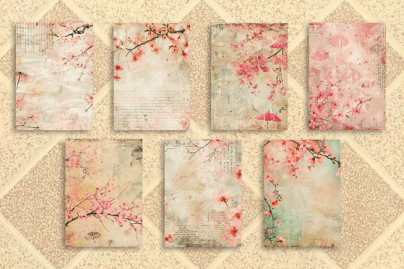 I use this kit when I want to capture the melancholic beauty of a spring evening. These pages for pink junk journals are soaked in a sense of tenderness and soft sorrow, featuring cherry blossom petals caught in a watercolor rain, with beautiful bleeding ink effects and “wet paper” textures.