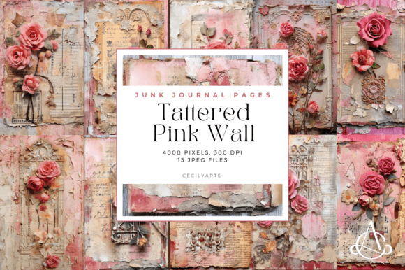 I love how these pages create an instant sense of history. They give pink junk journals a gritty, urban-decay feel by mimicking the look of peeling wallpaper and crumbling plaster in shades of blush and taupe.