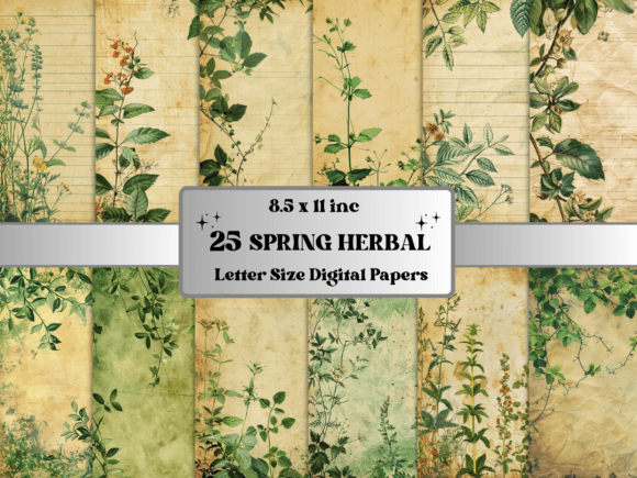 Spring Herbal Botanical Digital Paper
