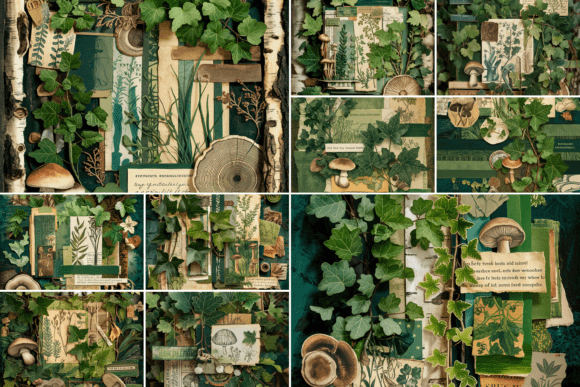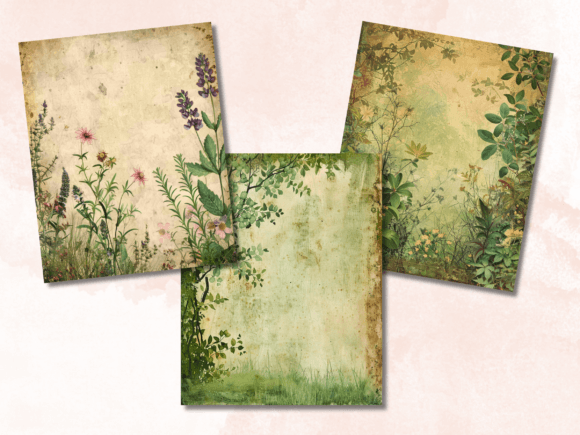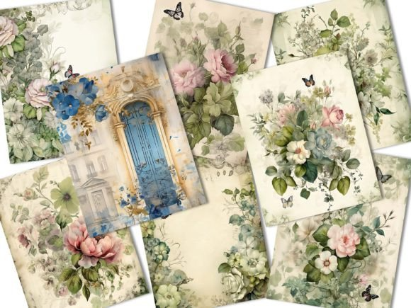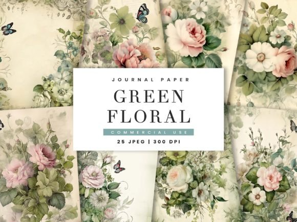 Green Floral Junk Journal Paper Pack