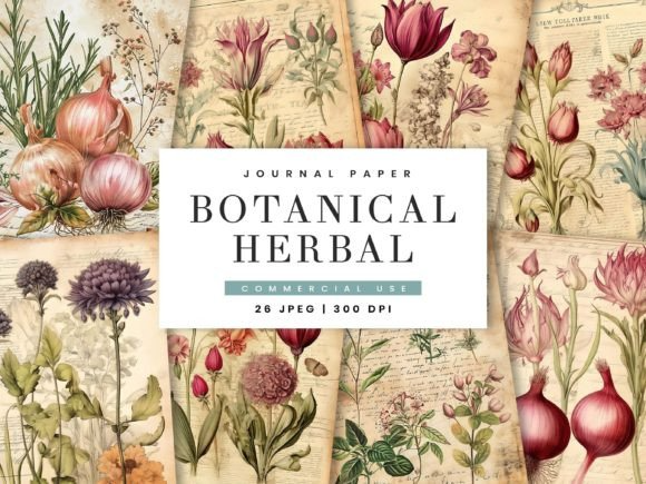 Botanical Herbal Collage Journal Paper