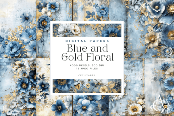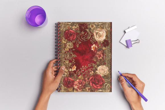 I love how the deep blues and shimmering gold accents give this floral journal a regal, midnight-garden feel. It’s my top choice for “luxury in decay” layouts or royal heritage themes. The best part is the metallic contrast; it adds instant depth without needing extra foil. Use it to create high-end covers or fancy divider tabs.