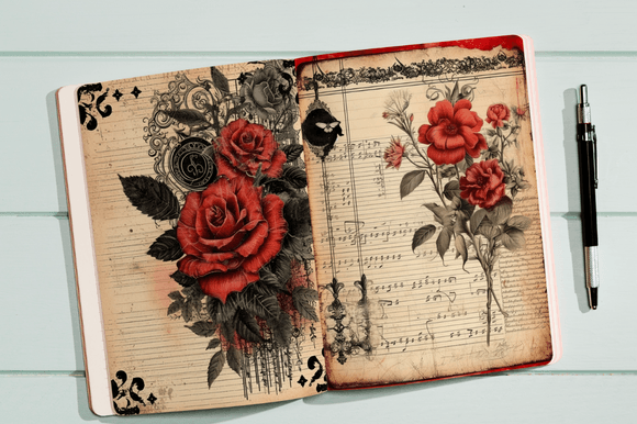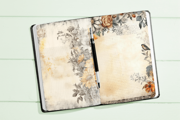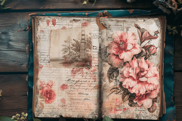 I’m obsessed with that perfectly worn-in look. These pages give my floral journal a nostalgic, “found in grandma’s attic” vibe. I use them for heritage spreads or soft, romantic memories. The faded edges and distressed blooms mean you don’t even have to ink the paper yourself—the vintage charm is already built right in!