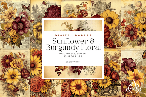 The rich burgundy and golden sunflower tones give this set such a warm, harvest-time soul. I love using it for a floral journal that feels cozy and “homegrown.” It’s brilliant for autumn memories or gratitude lists. The deep red contrast makes the yellow petals glow, which helps create a stunning focal point without needing any extra bulk.